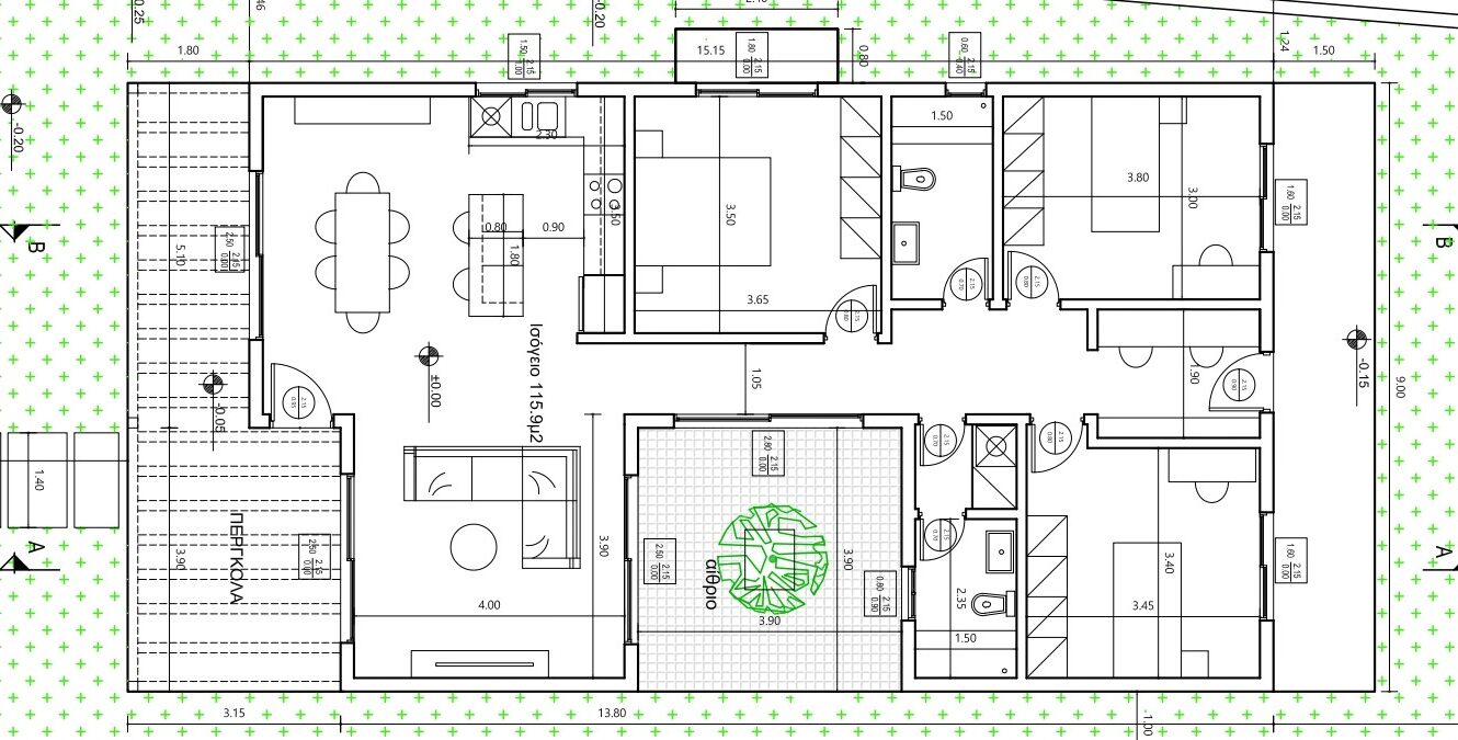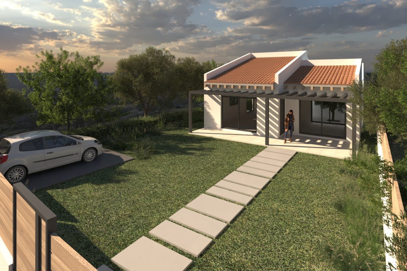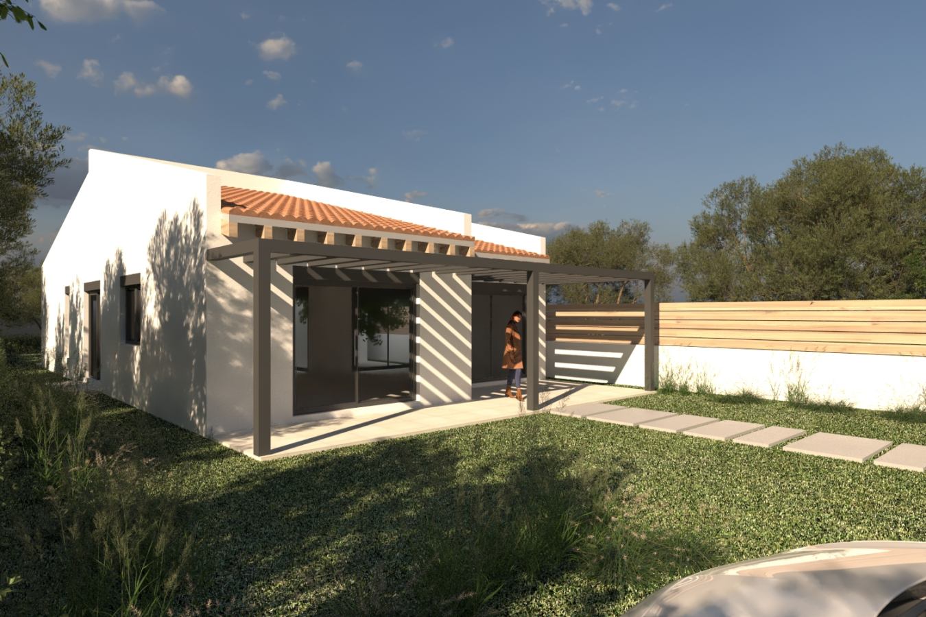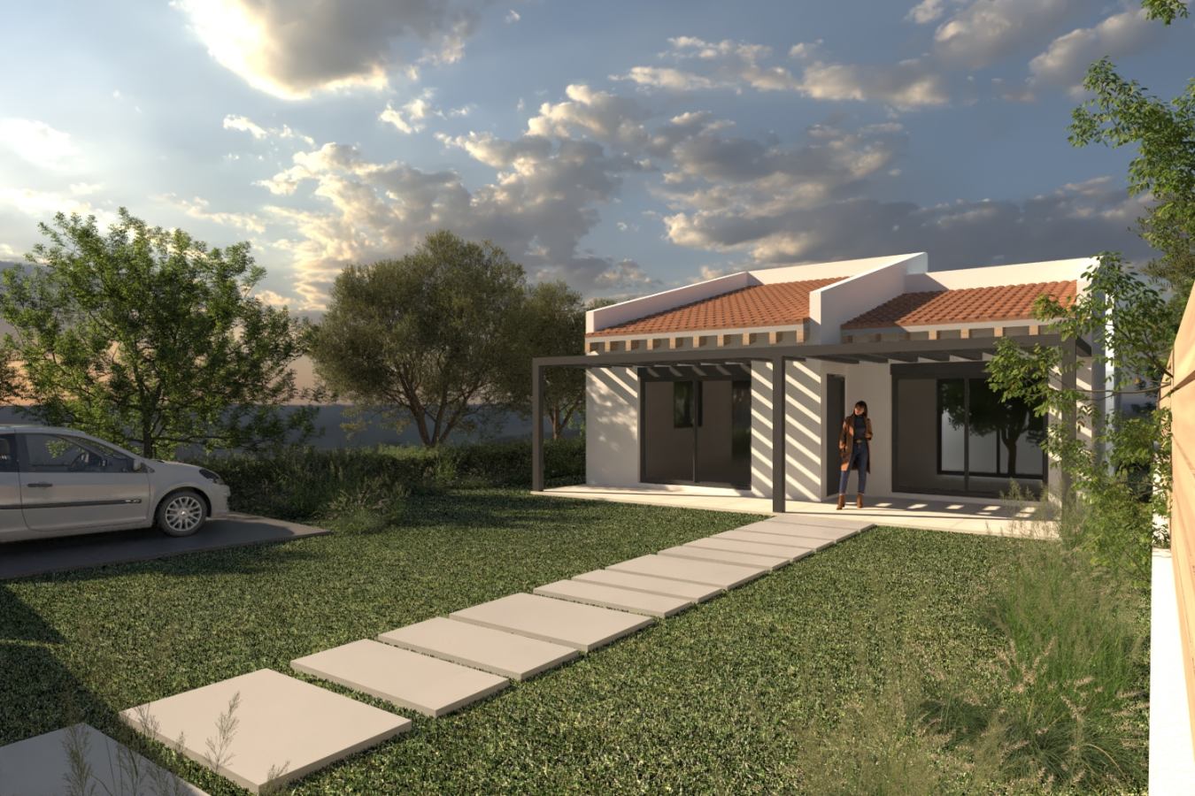 Πρόκειται για ισόγεια κατοικία η οποία σχεδιάστηκε για τετραμελή οικογένεια και περιλαμβάνει κουζίνα, ένα ενιαίο χώρο τραπεζαρίας και καθιστικού, λουτρό επισκεπτών, καθώς και τρία υπνοδωμάτια με ένα επιπλέον λουτρό. Κεντρικό αρχιτεκτονικό στοιχείο της κατοικίας είναι το αίθριο με κήπο τοποθετημένο στο κέντρο της κατοικίας, επιτρέπει τον ηλιασμό και αερισμό των χώρων που βλέπουν σε αυτό, και δημιουργεί στον χρήστη μια αίσθηση συνέχειας των εσωτερικών και εξωτερικών χώρων, καθώς και τη συνεχή αίσθηση ότι περιβάλλεται από το τοπίο.